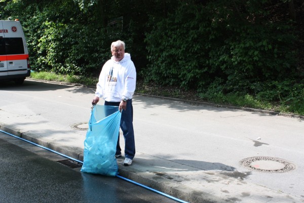 Am 18.05.2014 bildeten 27 Mitglieder des TV Westfalia 1884 Buer e. V zum 2. Mal die Verpflegungsstation an der Hans-Böckler-Alle direkt unter der Autobahnbrücke der A 42. Bei herrlichem Wetter traf man sich um 8.30 Uhr um die Station aufzubauen. Es wurden Eigenverpflegung der Läufer, Wasser, Coca-Cola, Energydrink, Bananen und Schwämme mit Wasser angeboten. Leider hatte der Veranstalter die falsche Mischung für das Energiegetränk geliefert, so dass diese Dienstleistung nicht gewährt werden konnte. Gegen 10.30 passierten die ersten Läufer die Verpflegungsstation und gegen 16.00 Uhr war auch der letzte Läufer des Marathons vorbei. Die 1. Vorsitzende Gerda Krell bedankte sich bei den ehrenamtlichen Helfern, die an diesem Tag viel Spaß hatten unter anderem auch deshalb, weil der Veranstalter, anders als im letzten Jahr, an die Lieferung der versprochenen Fleischwurst gedacht hatte.